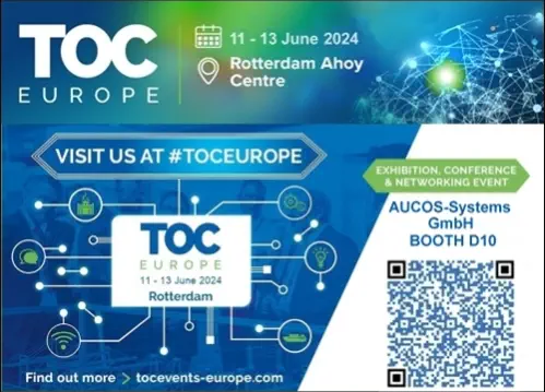 TOC Europe took place in Rotterdam from June 12th to 14th. Our sales company AUCOS-Systems GmbH was also represented there. We thank all visitors for their interest. The AUCOS-Systems GmbH team